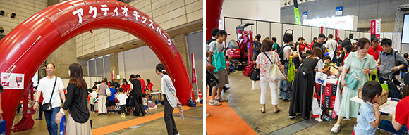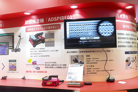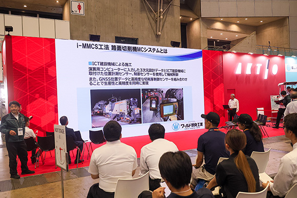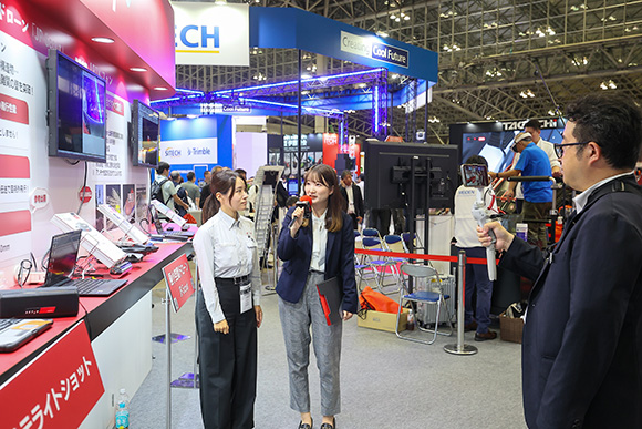 アクティオは屋内・屋外ブース合わせて約50種類に及ぶ商品を展示し、過去最大規模の出展内容となった。また大型スクリーンが設けられたステージでは、グループ企業などによる最新技術・商品のプレゼンテーションが行われた。