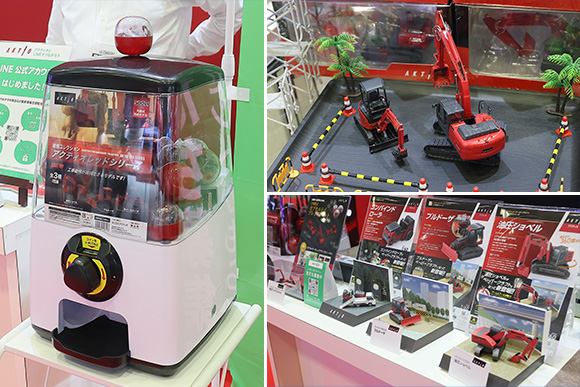 このほかブースの一角で、アクティオブランドショップも出店。建機ミニチュアモデルや、新商品のカプセルトイ、ペーパークラフト、防災セットの販売を行った。