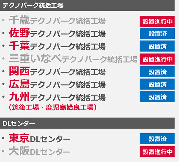 災害時の拠点「テクノパーク統括工場」「DLセンター」