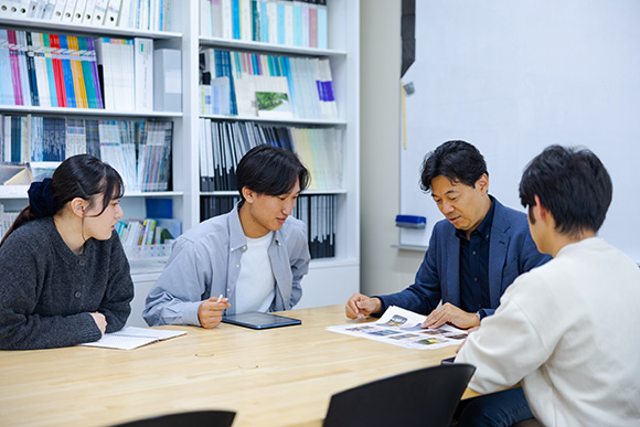 私は、福岡大学で景観や公共空間のデザイン、まちづくりを専門に教えています。4年生以降は研究室で学生の研究テーマを一緒に深めるゼミを持ち、大学院でも景観に関する授業を持っています。