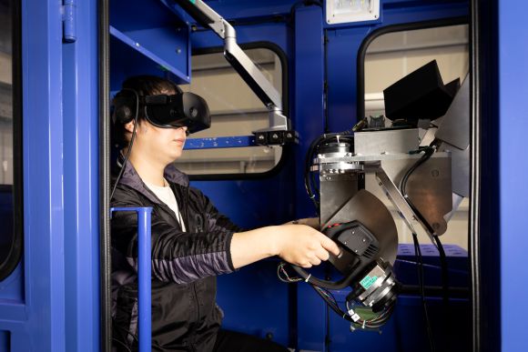 操縦ハンドルを通じ、人とロボットの双方向に微妙な力加減が伝わる